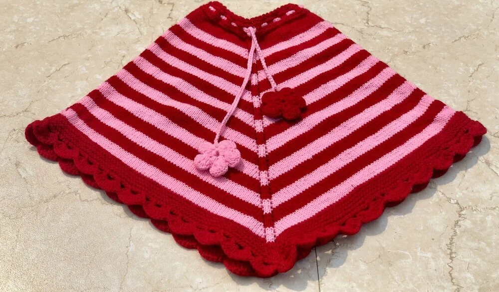 Punté Poncho is a creation of 61 years old former school teacher, Shakuntala Rana. This is a great warm outerwear for 2 to 4 year olds. Shakuntal learnt how to knit as a child from her mother’s knitting club.